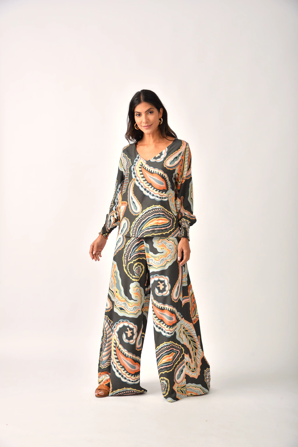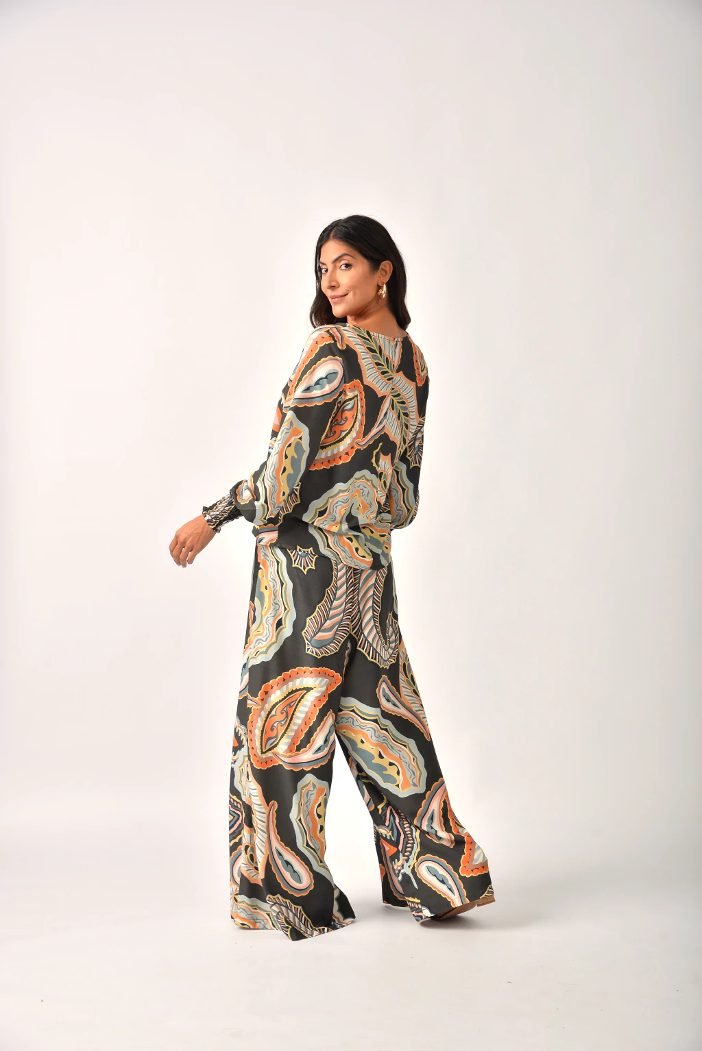 Nossa Pantalona oferece um caimento fluido e confortável, ideal para os dias mais frescos. Com estampa exclusiva, a peça traz um design único e cheio de personalidade. De cintura alta e comprimento longo, alonga a silhueta e combina perfeitamente com nossas camisas oversized ou cropped tops, garantindo um visual elegante e versátil.