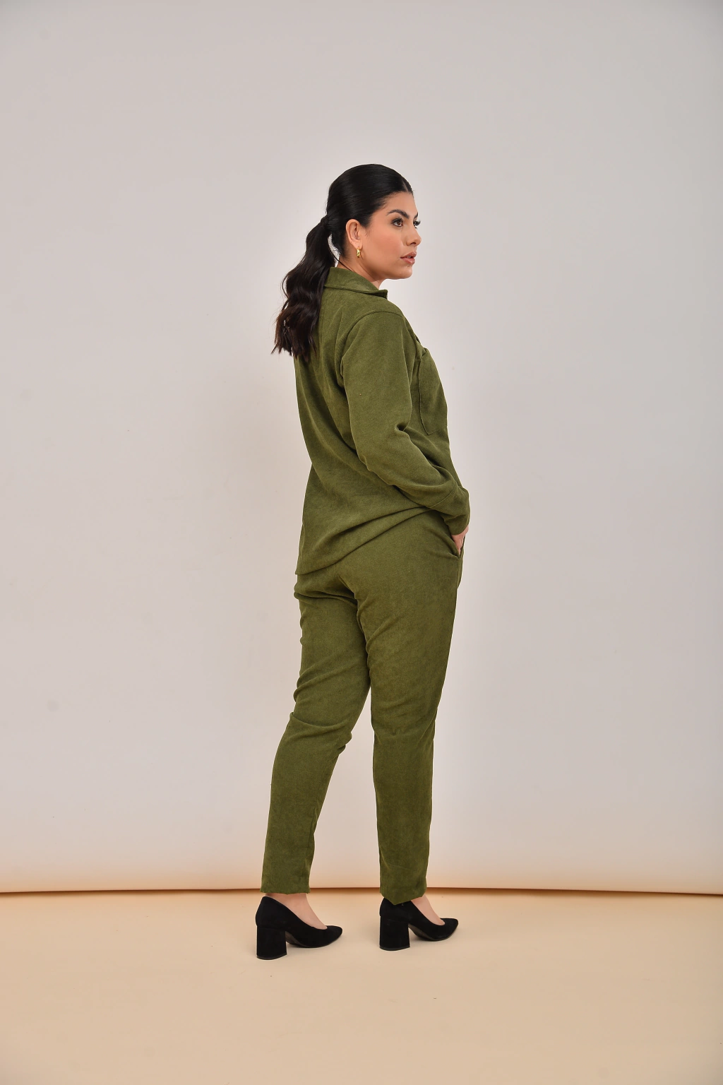 Explore o luxo e o conforto com nossa Calça de Veludo Verde Militar. Feita com tecido de veludo, esta peça não só oferece um toque de sofisticação, mas também mantém você aquecida em dias mais frios, proporcionando estilo e funcionalidade em cada uso. Aproveite para combinar com a Blusa de Veludo Verde Militar.