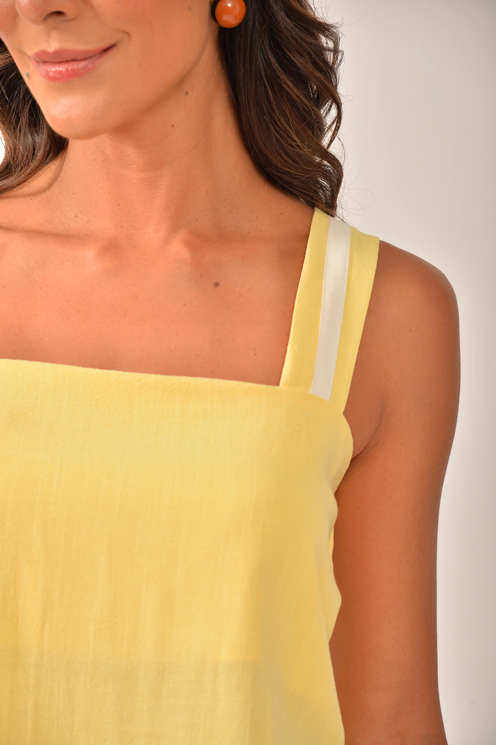 Composição: Regata - 80% Viscose, 20% Linho; Saia - 75% Viscose, 25% Linho