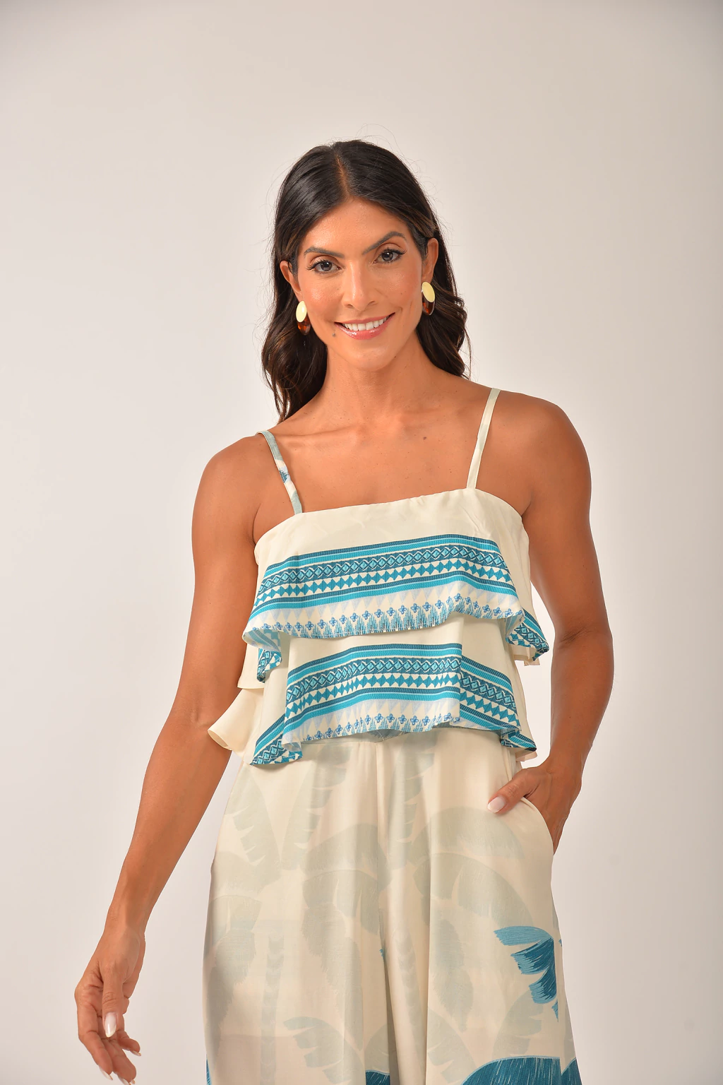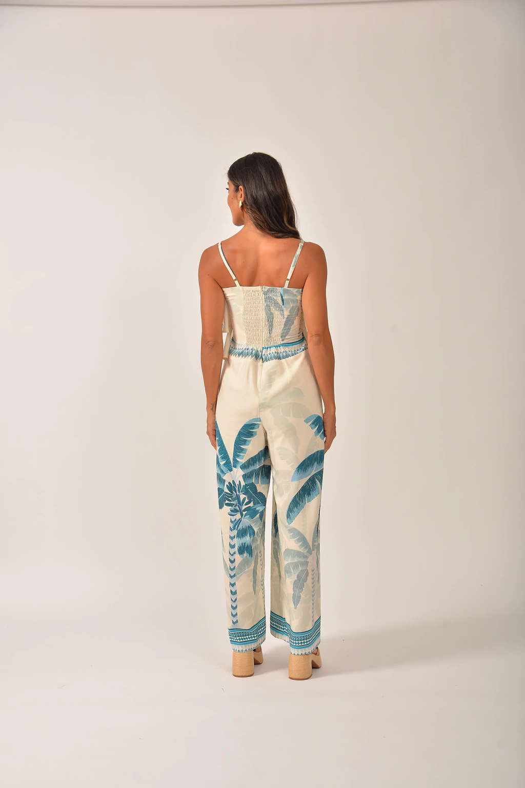 O Macacão Paraíso Azul tem uma modelagem charmosa e confortável. O decote reto. A calça é com zíper e com detalhe de “cordinha” para ajudar no acinturamento.