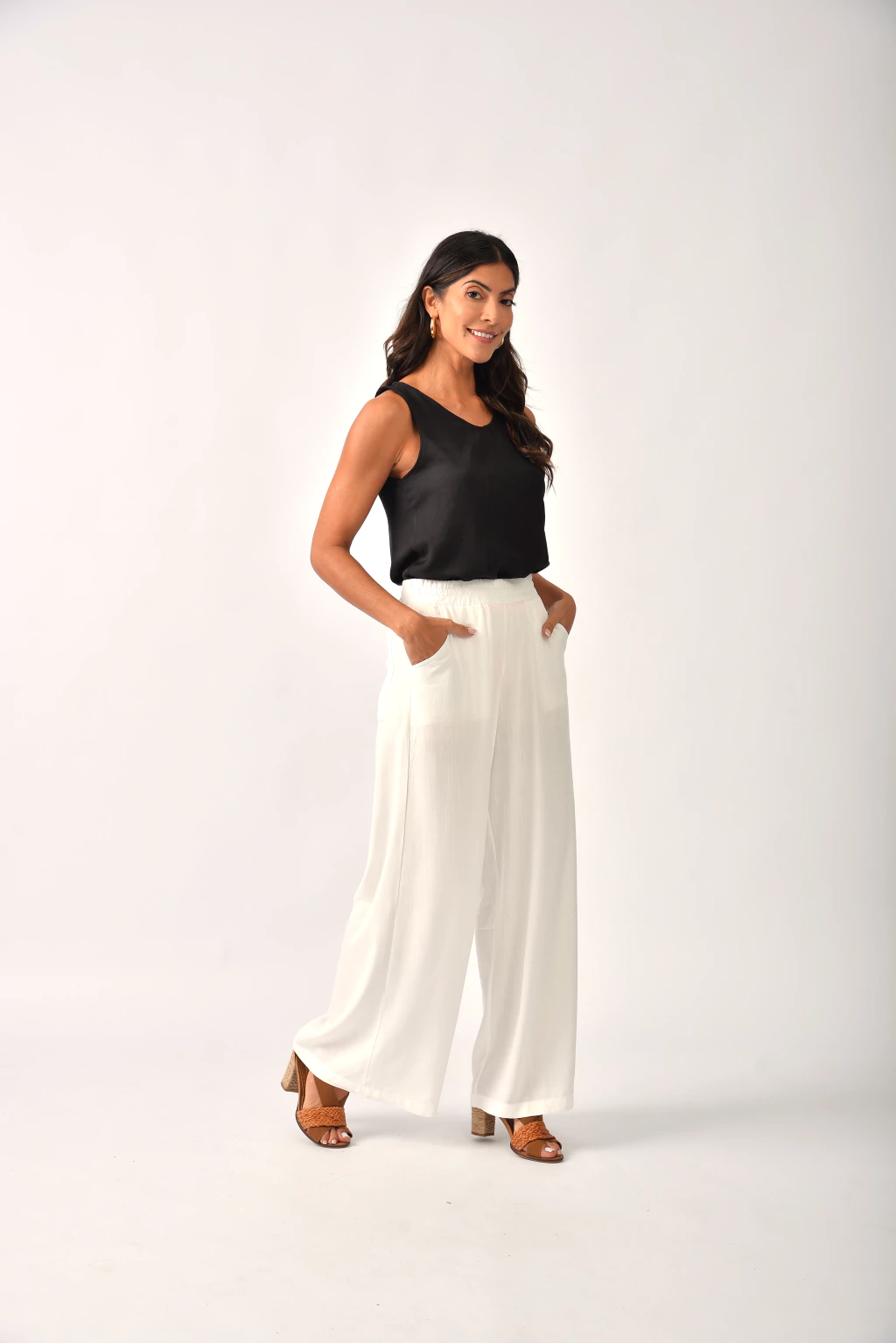 Essencial e atemporal, a regata de silhueta reta com gola redonda e detalhe frontal é perfeita para compor looks leves e versáteis. Com caimento confortável, é uma peça curinga que transita com facilidade entre produções casuais e mais elaboradas.