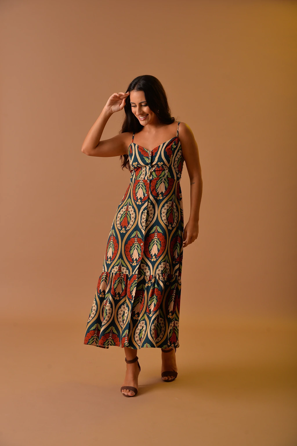 Com um corte fluido e versátil, este vestido é perfeito para looks casuais ou mais elaborados, podendo ser usado com sandálias, botas ou tênis. Uma peça essencial para quem busca estilo e funcionalidade em um só modelo. Com alças reguláveis, ele permite um ajuste personalizado, enquanto os botões na parte da frente adicionam um toque de charme e praticidade. O elastano na parte das costas garante um caimento perfeito, valorizando a silhueta sem comprometer o conforto.