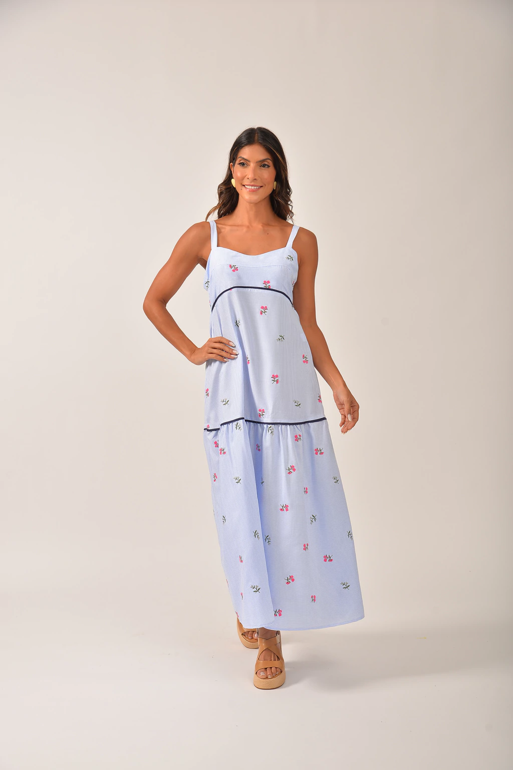 Este vestido ferece um caimento fluido e um toque delicado, ideal para looks descontraídos e cheios de movimento. A modelagem soltinha garante conforto, enquanto os bolsos funcionais adicionam um toque moderno e utilitário ao design. Com um visual descontraído, este vestido é perfeito para o dia a dia, podendo ser usado com tênis para um estilo casual ou com sandálias para um visual mais refinado. Uma peça essencial para quem busca praticidade sem abrir mão do charme!