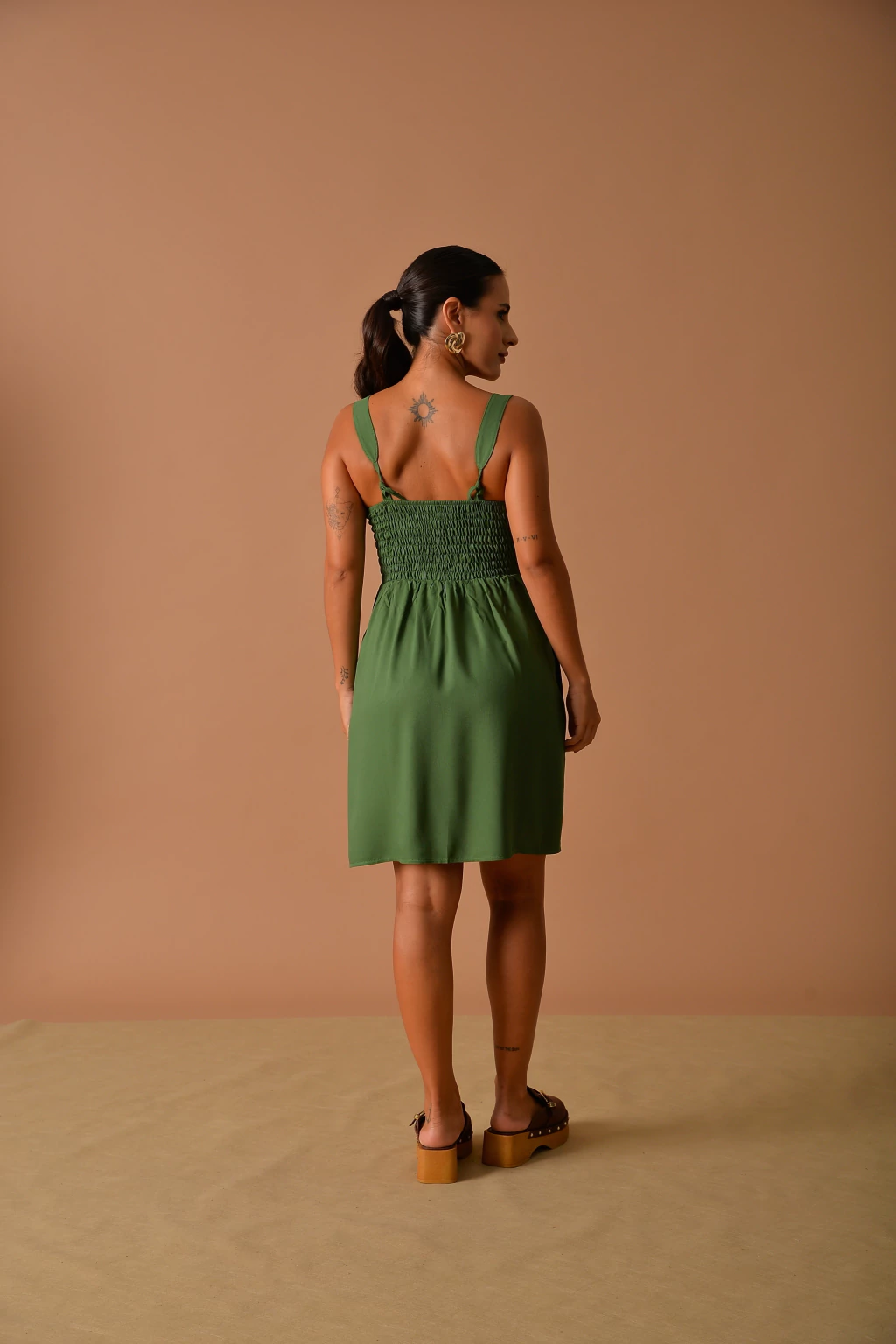 Nosso vestido combina elegância e conforto, perfeito para ocasiões casuais. O destaque fica por conta do delicado laço na frente do busto, que adiciona um toque feminino e charmoso ao visual. A parte das costas é confeccionada com elastano, garantindo um ajuste perfeito e maior liberdade de movimento. As alças reguláveis permitem que você personalize o caimento do vestido de acordo com o seu estilo e necessidade, proporcionando um look impecável e confortável ao mesmo tempo. Ideal para quem busca um vestido moderno e cheio de personalidade.