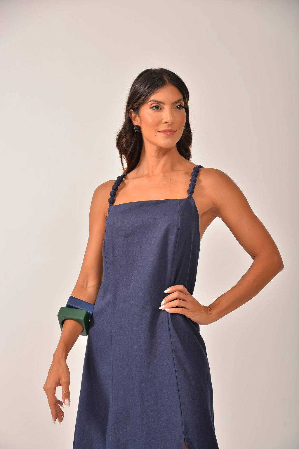 Vestido longo liso, de modelagem reta e fluída, que valoriza a silhueta com leveza e elegância. Possui detalhes nas alças, fendas lateiras e amarração nas costas. Confeccionado em tecido leve, é uma peça versátil e atemporal, perfeita para compor looks sofisticados do dia à noite.